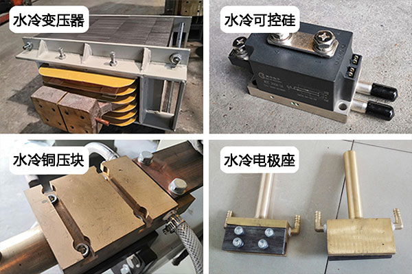采用整機(jī)水冷設(shè)計,水冷變壓器,水冷可控硅,水冷銅壓塊,水冷電極,有效緩解焊接發(fā)熱。